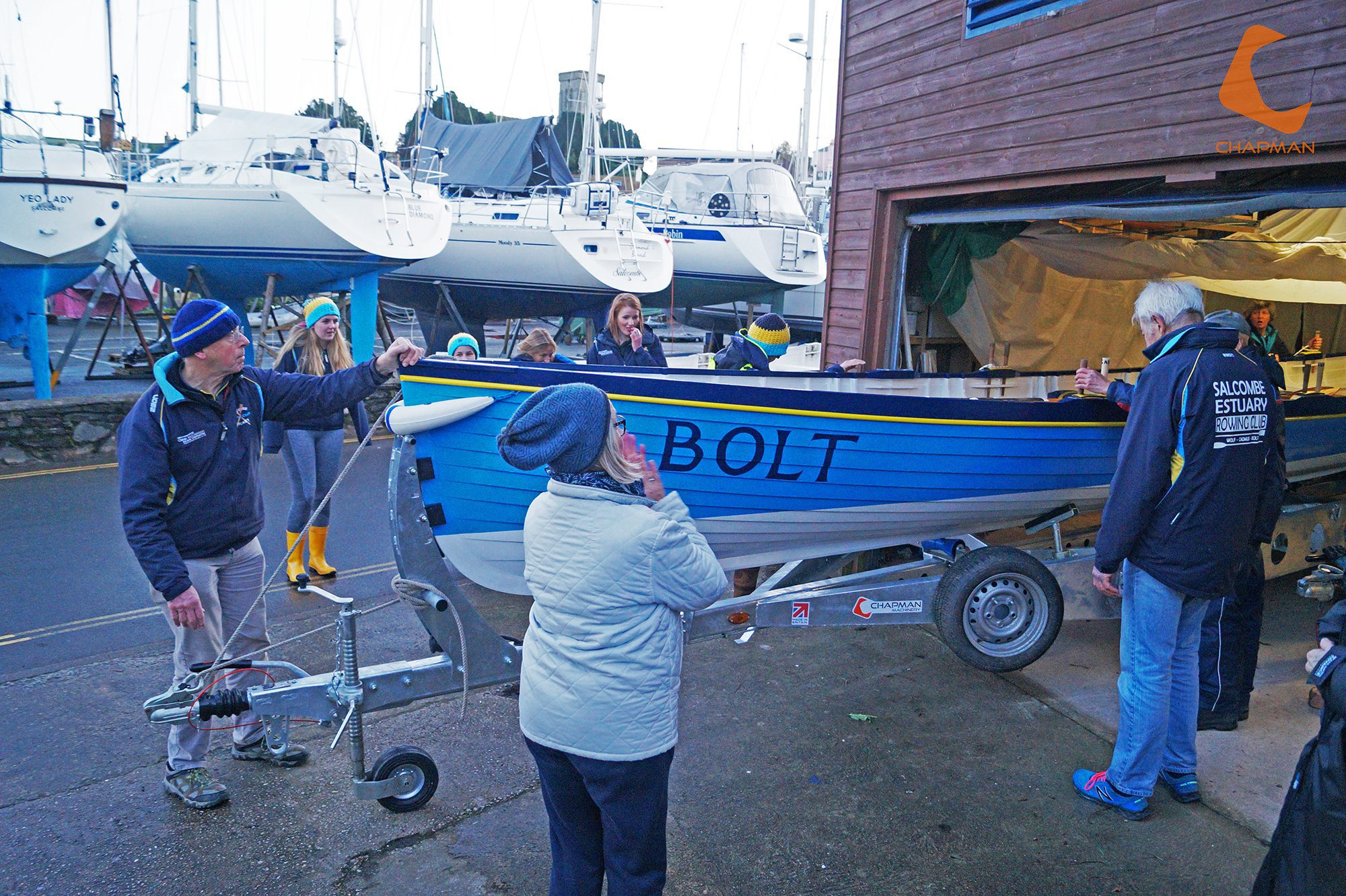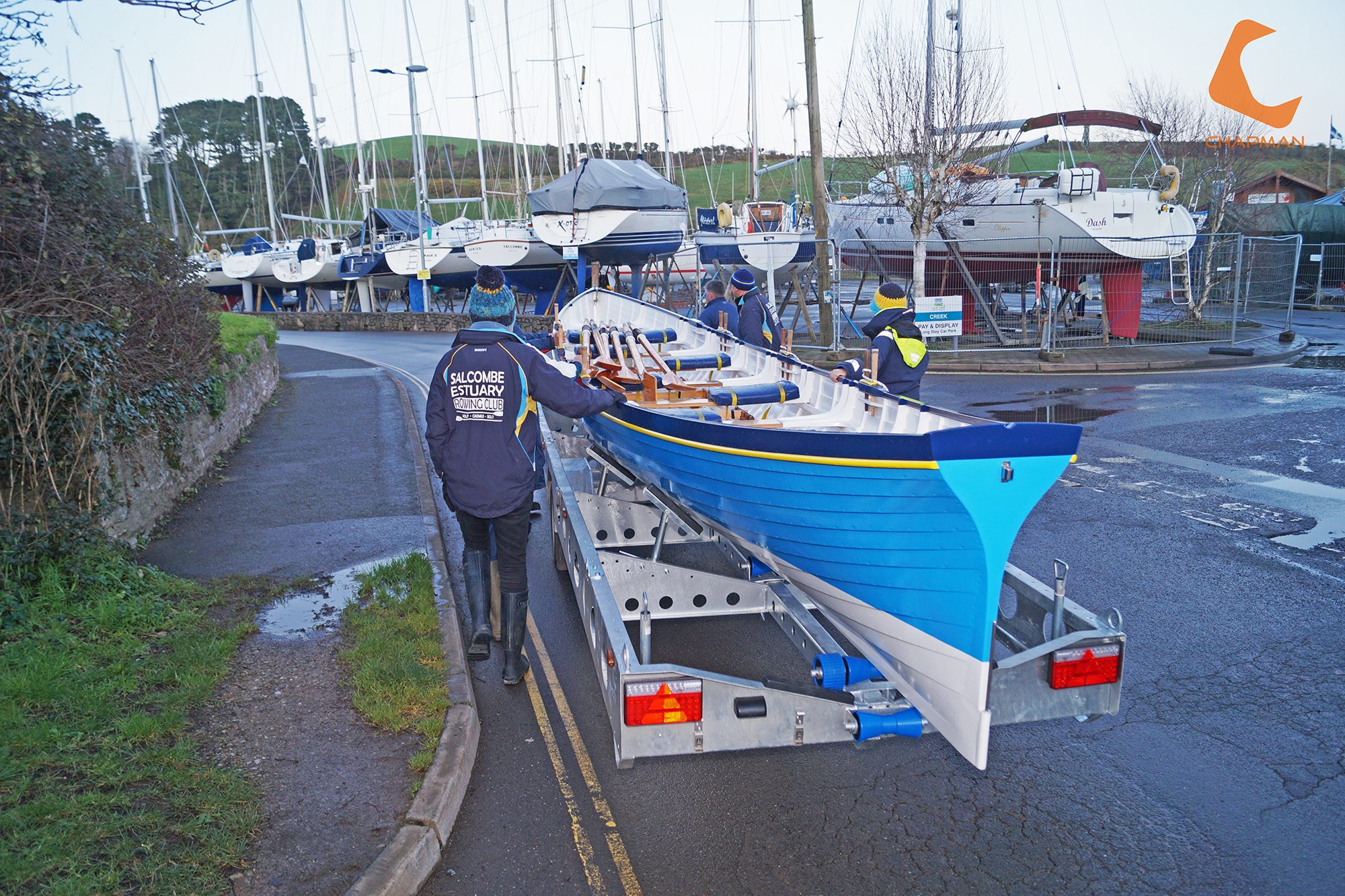 4 fixed keel supports along the centre of the boat and 4 variable height supports to ensure the boat is well supported during transit. Side supports are angled and located so that when in the loading position (supports down), the keel supports do not drag the ground and are protected within the framework of the trailer itself.