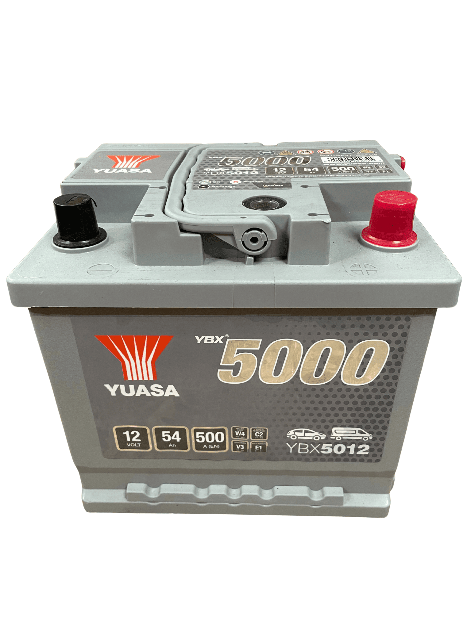 12v 54Ah 500A Yuasa high performance battery, RH positive, B13 hold down, type 063H.